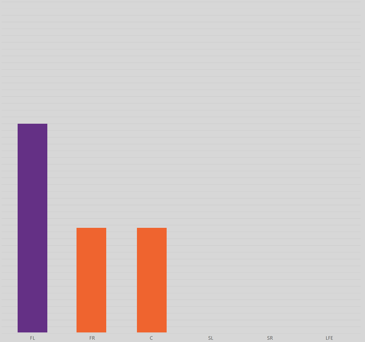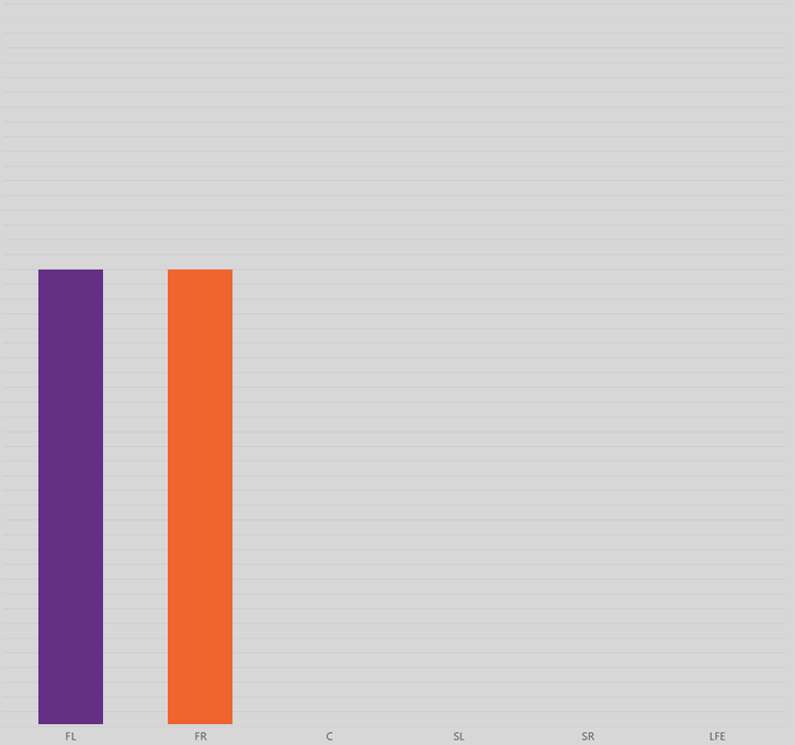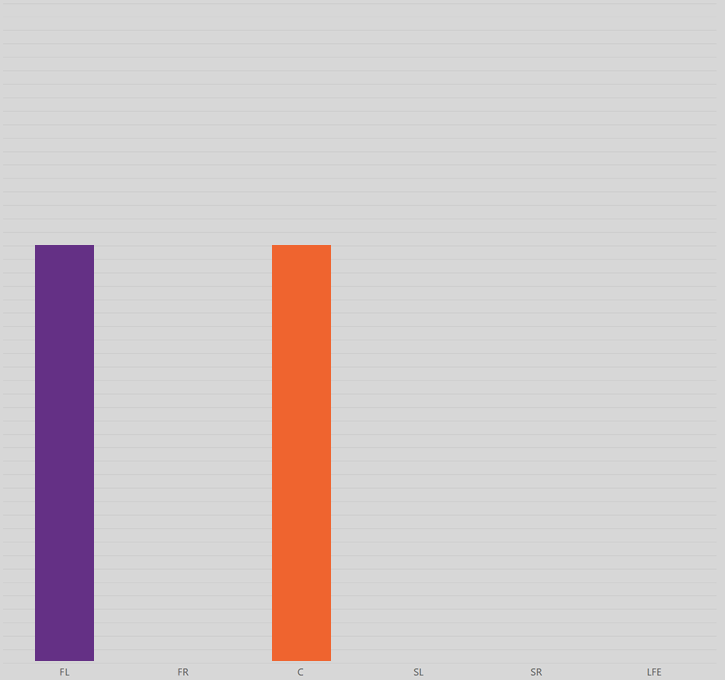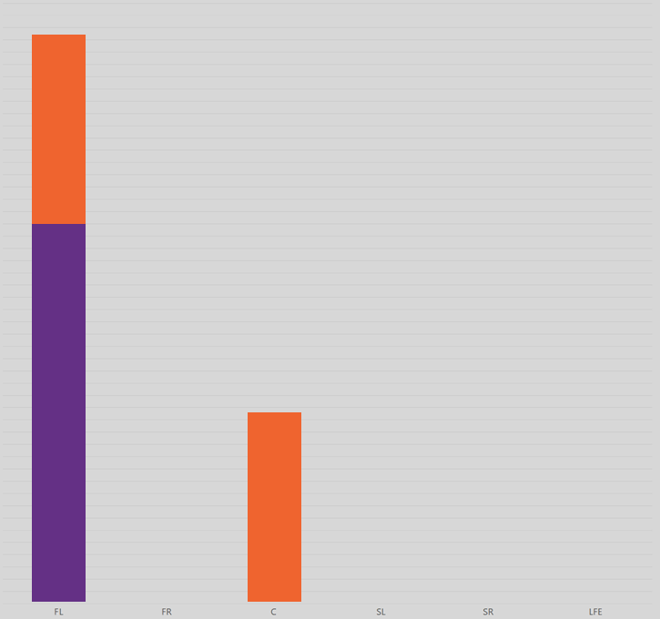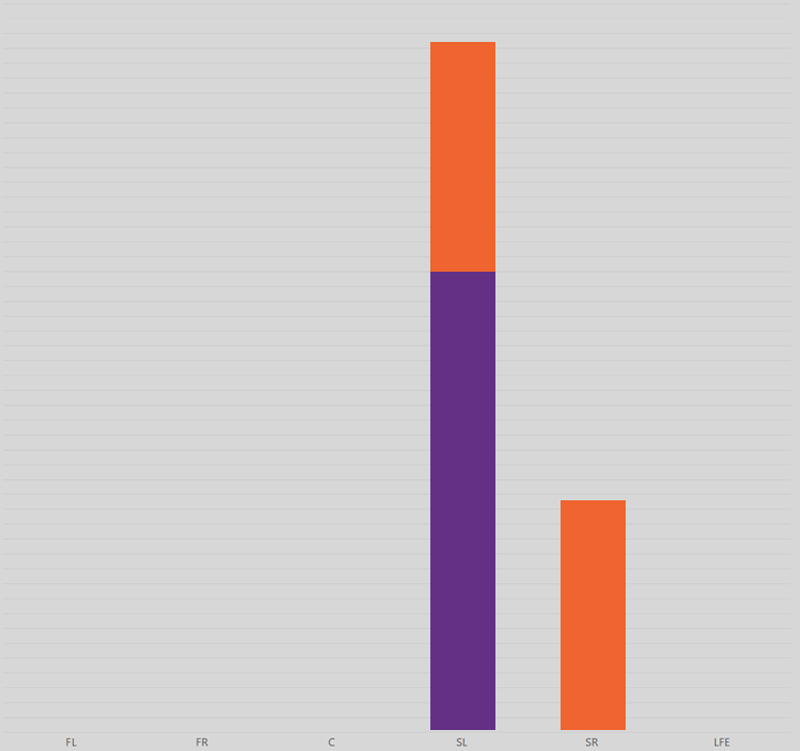 The C channel contains the signal of the input’s R channel, but quieter, and the FL channel of the bus contains a mixture of the input’s L and R channels. The other channels are silent. | ||