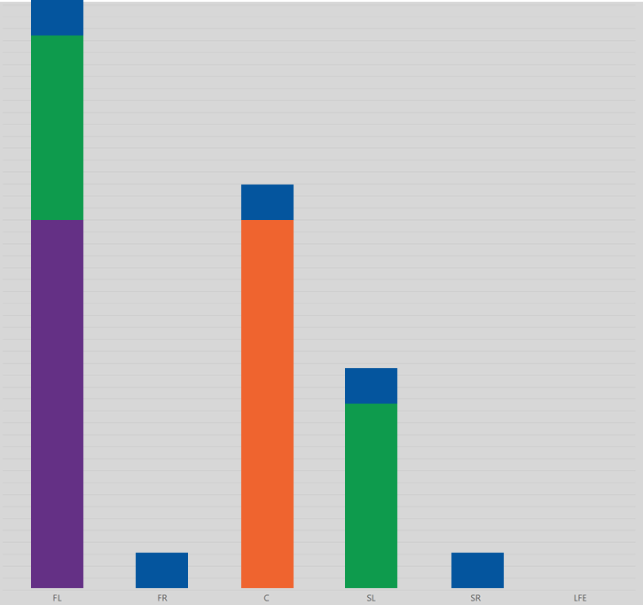 The FL channel of the input is panned to the FL channel of the bus, FR is panned to the C channel of the bus, SL is panned between the SL and FL channels of the bus, and SR is panned between all channels of the bus. | ||