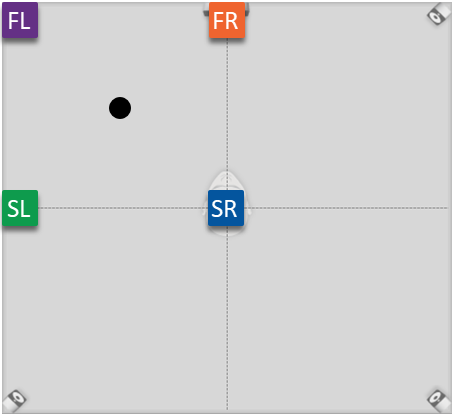 Although not represented in the 2D plane of the user interface, the Z coordinate of the control point can be changed using the corresponding slider in the lower-left corner of the Speaker Panner.
