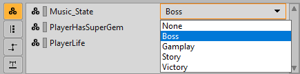 In the Transport Control you have access to the game syncs that you have created for your project. To audition the States, Switches, and RTPCs as they are applied to your sounds, music, and motion objects, you can do any of the following.
