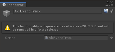 ![]() | Note: | The AkEventTrack and AkRTPCTrack tracks and their associated playables are only included to provide backward compatibility and should no longer be used. |