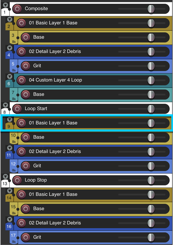 Select track 9, named 01 Basic Layer 1 Base. It is a child of track 8, named Loop Start.