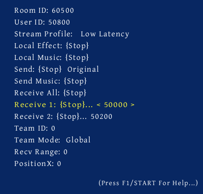 To enable 3D spatialization for the received voice, press Enter on the Receive 1 or Receive 2 option.