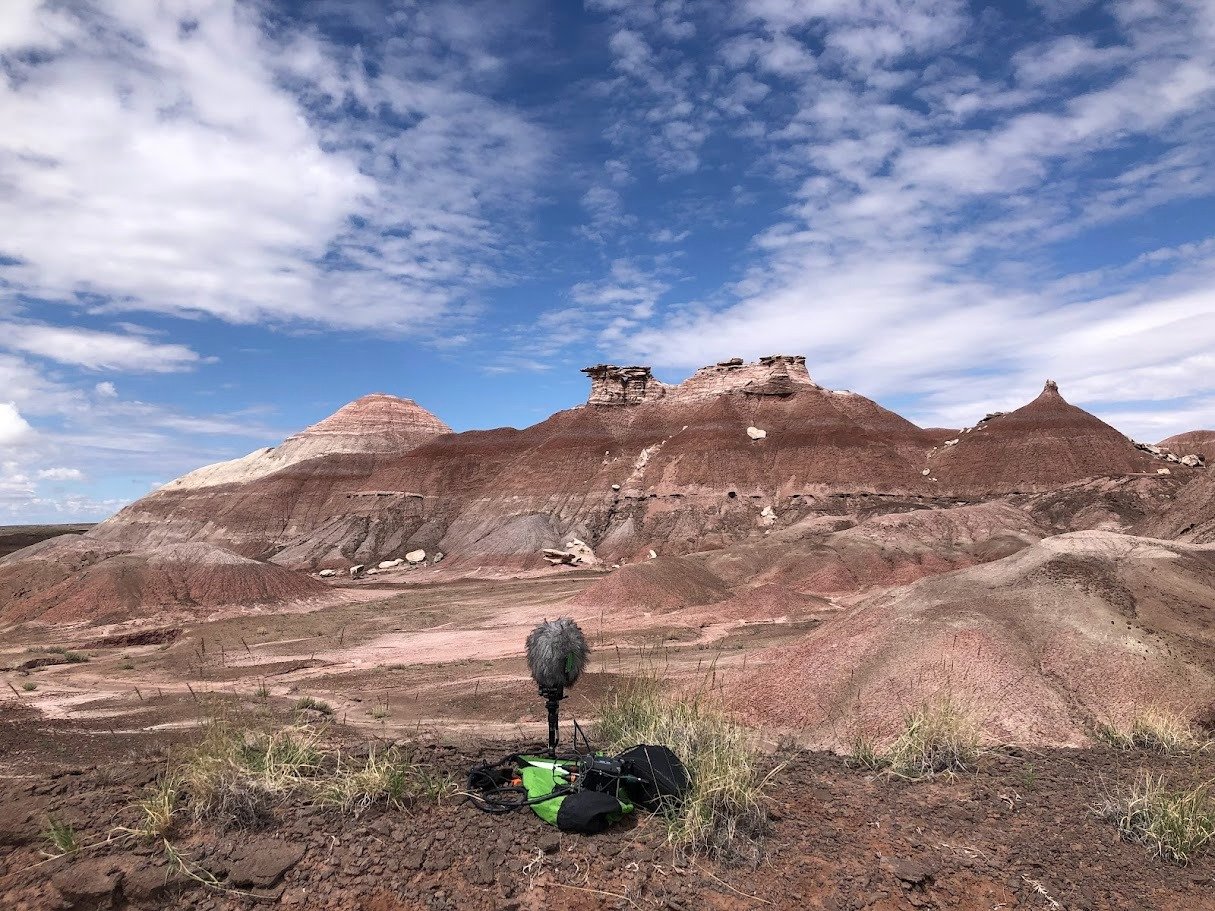 マイクを構えた私の中にも、サウンドスケープを作り上げた時の記憶がまだ残っています。夜明けに砂漠で本能の導くままに「録音」ボタンを押した直後に、コヨーテの3つの群れが何の妨げもない広大な空気の中で互いを呼び合ったこと、日の出を浴びながらひたすら立ち続けていたサンファン川のほとりで、鳥の合唱に圧倒されたまさにその時、驚いたスカンクが静止した世界に動きをもたらしたこと、アカオノスリが縄張りを守るかのように鋭い鳴き声を上げながら私たちに向かってきた時に一迅の風を感じたことなどが思い出されます。
