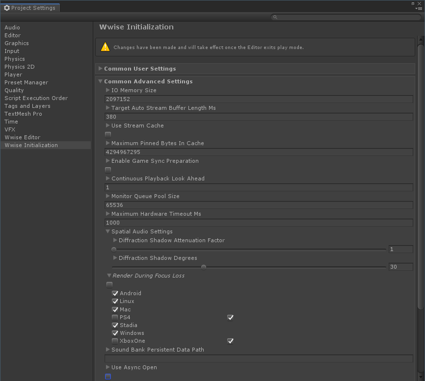 Wwise Initialization Settingsが、Unity Editorに公開されました。これからは、変更を文字列で行う必要がありません。