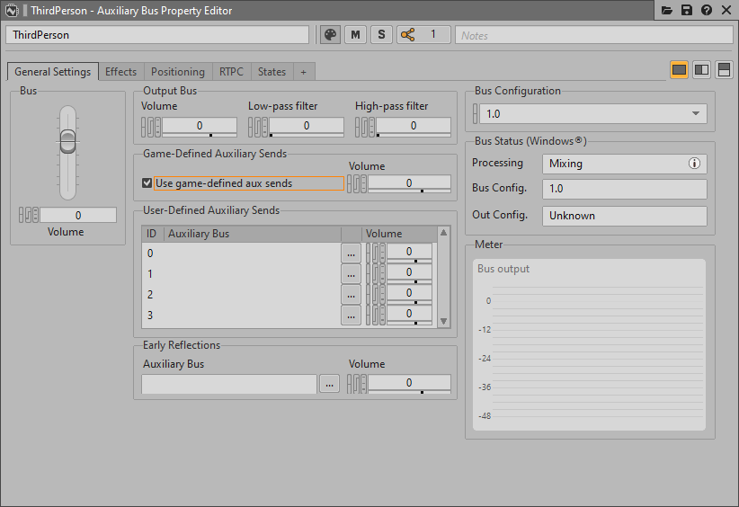- General Settingsタブで、 Use game-defined auxiliary sends がチェックされていることを確認します。