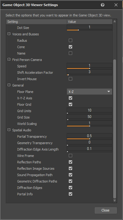 エミッタからリスナーまでのパスで計算された回折係数が、回折エッジごとに表示されます。組み込みゲームパラメータ値はバインドされているゲームパラメータをGame Sync Monitorに追加することでプロファイリングでき、オブストラクションやディフラクションはProfilerのObs/Occタブでプロファイリングできます。