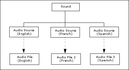 最も一般的なソースが、オーディオソースです。オーディオソースが、インポートしたオーディオファイルとサウンドオブジェクトの間の別レイヤとなります。プロジェクトにインポートされるオーディオファイルにリンクされている。