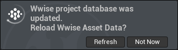 To avoid reloading in-memory assets every time you change the contents of the GeneratedSoundBanks folder, you can select an option in the Unreal Project Wwise User Settings to enable a prompt before assets are reloaded. When this setting is enabled, Wwise assets can only be reloaded with explicit user input except during the initialization of the Wwise Project Database when the Unreal editor is opened.