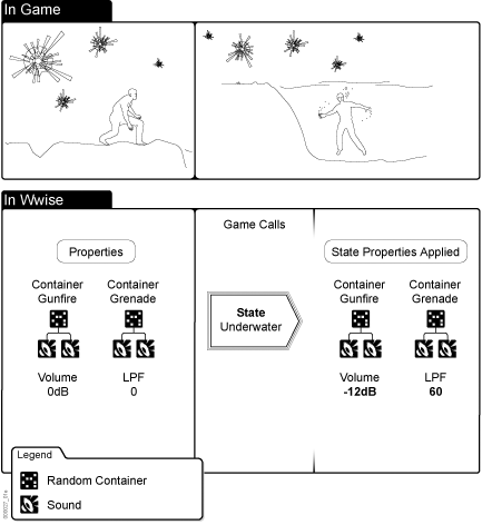 ゲームデザイナーは、可能な限り魅惑的なオーディオを、最小限のメモリ、CPU、アセット、ディスクスペースを使って作成しようと、常に努力を重ねています。Stateには、この挑戦に対する効率的でクリエイティブな考え方が導入されています。Stateを使うと、1つのサウンドに対して数種類のミキサースナップショットを作成できるので、ゲーム側の変更に合わせたプロパティ変更をグローバル(全体的)に適用する柔軟性が生まれ、サウンドやミュージックアセットを最適化できます。ゲーム中のアクションに合わせて、サウンドオブジェクトやミュージックオブジェクトのプロパティを変化させることで、アセットを新たに追加することなく、クリエイティブに対応できます。Stateをいつ、どこで活用すれば、最も効率的でクリエイティブな結果が得られるかを、プロジェクトの初期段階で決めてください。