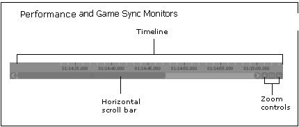 Performance Monitorではタイムラインを使って、サウンドエンジンからキャプチャーされて、Capture Logにログされた、各アクションやノティフィケーションを探せます。Performance Monitorのタイムラインに表示される各種エレメントを、下図に示します。