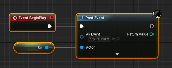 The Post Event function requires a reference to an Actor to place the Wwise Event.