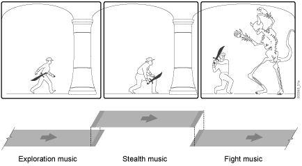The following illustration demonstrates the effect you can achieve with interactive music: