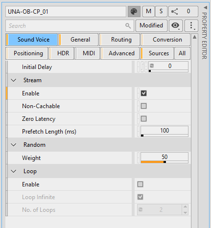 For each object type there is a category containing properties specific to that object type, for example Sound Voice, or Sound SFX.