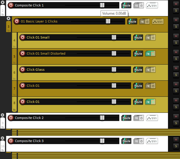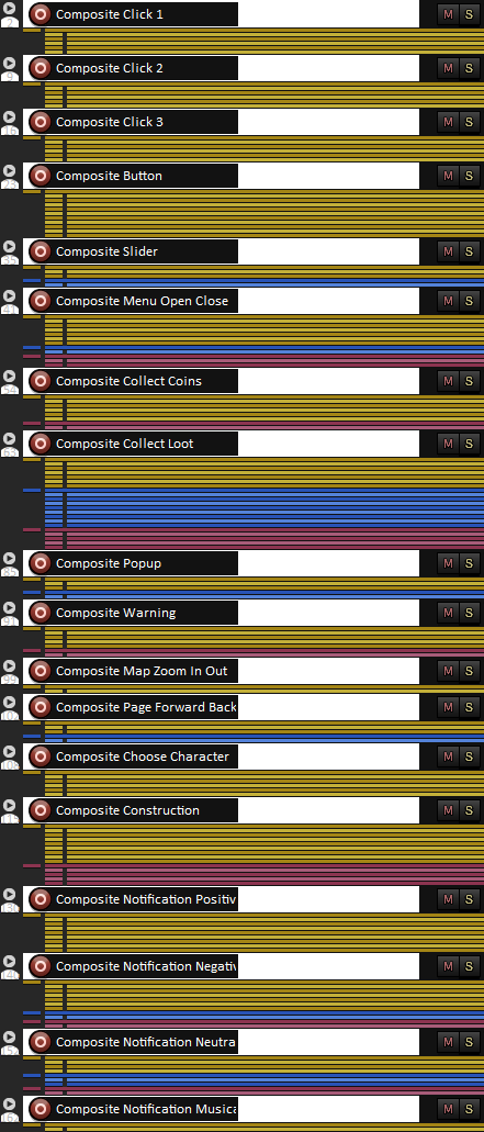 インターフェースサウンドの種類ごとに、サウンドデザインに対応したレイヤーのあるCompositeトラックがあります。
