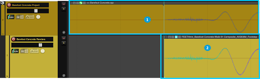 メインプロジェクトを使い、効率的にFootstepコレクションのサウンドを可視化、検索、試聴することができます。メインプロジェクトに各サブプロジェクトのトラックが含まれ、メディアアイテムはネスト化されたトラックの各種サブプロジェクトを参照します。メディアアイテムを自由に試聴することができ、メディアアイテムは該当するサブプロジェクトのレンダリングされた出力の一部を参照します。