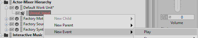 This section describes how to create the Unreal input source in your Wwise Project. As part of the process, you must create an Event to play the associated Sound SFX. Unreal also requires the Event to determine which Audio Input to use for the FAkMixerPlatform