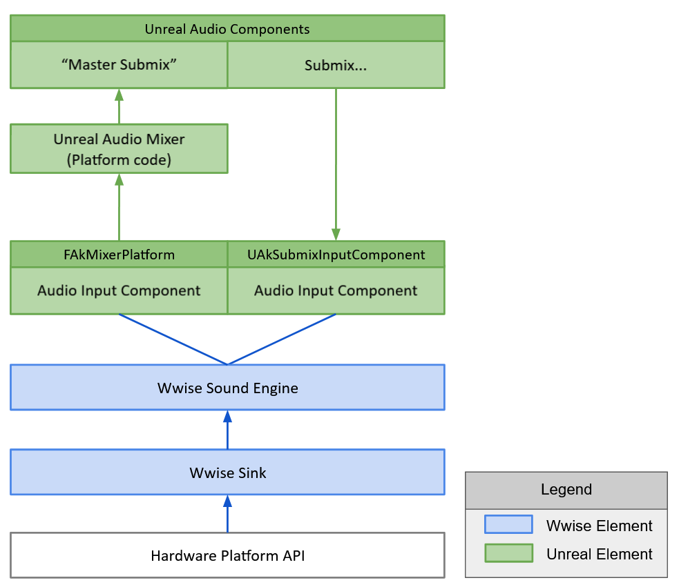to substitute the platform-specific part of the Unreal Audio Mixer. Through a stereo feed, it is then possible to retrieve the result of the Unreal mixdown as a Wwise Audio Input. When you use FAkMixerPlatform