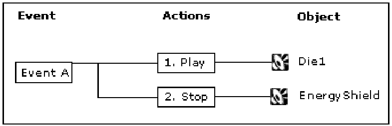 “Action” Events—these Events use one or more actions, such as play, stop, pause and so on, to drive the sound, music, and motion in game.