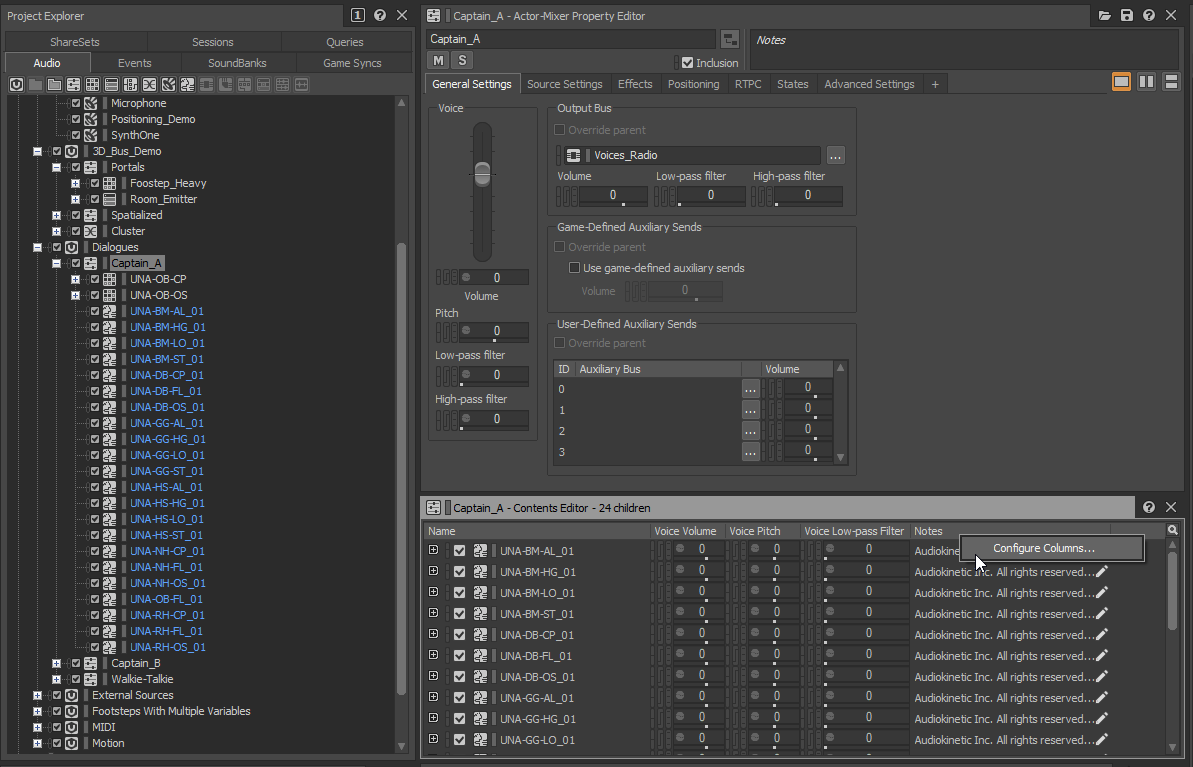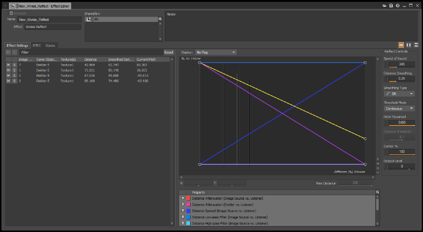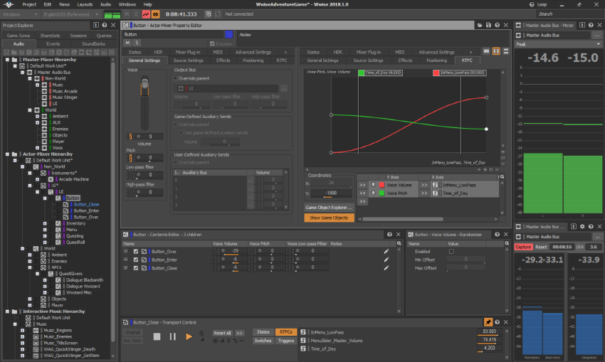 In response to popular demand to augment legibility and contrast within the Wwise interface, Wwise 2018.1 presents a new Dark UI. This new skin allows text, colored curves and other graphics to stand out, and certainly makes the Wwise interface a lot more attractive! For old-timers preferring the original look, it’s still possible to keep the Classic theme. Users who would prefer something in between the Classic and Dark themes can also customize the UI using brightness, contrast, hue, and saturation controls.