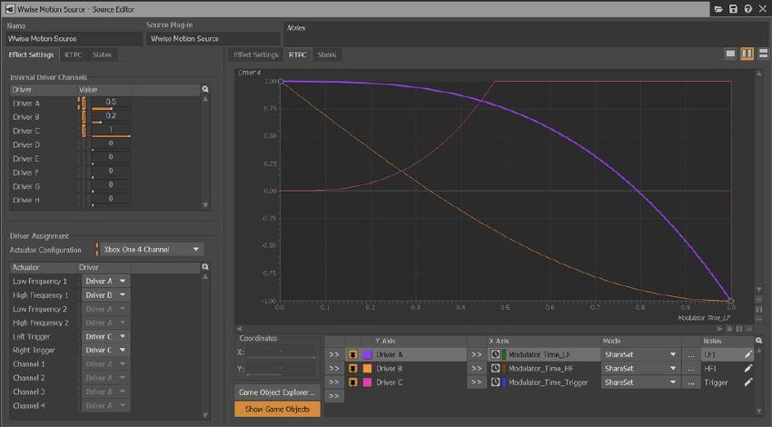 ![]() | 참고: The old Wwise Motion Generator plug-in is still available but is now deprecated. |