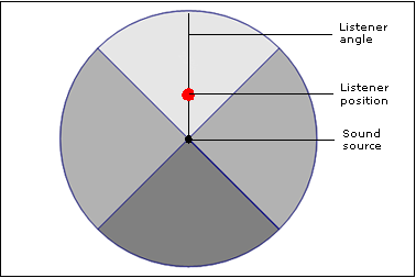 그러면 청자가 음원 주위를 이동하는 것처럼 들립니다. 원뿔 감쇠가 활성화된 경우 청자가 소리 원뿔의 여러 영역을 이동함에 따라 감쇠가 변경됩니다. 각도를 변경하더라도 거리는 변경되지 않습니다. 결과적으로 소리가 거리에 따라 감쇠하지 않습니다.