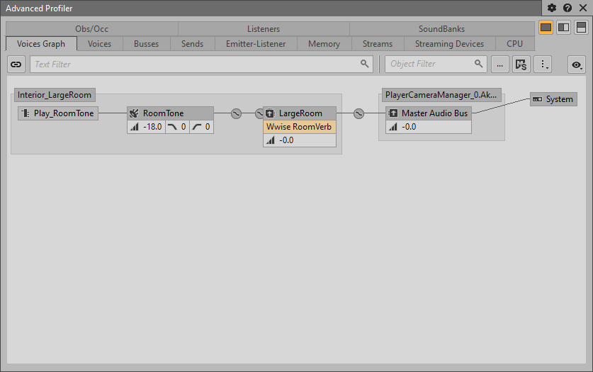 공간음이 재생될 경우를 나타내는 Advanced Profiler 뷰