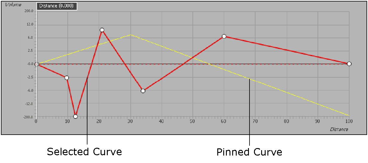 그래프에 여러 곡선이 표시될 경우 X축과 Y축의 단위가 표시되지 않을 수 있습니다. 이 현상은 이 곡선들의 Game Parameter 또는 속성 단위가 서로 다를 때 일어납니다. 예를 들어 피치와 볼륨 곡선을 같이 표시하면 한 곡선은 센트를 사용하고 한 곡선은 데시벨을 사용하기 때문에 Y축의 단위는 표시되지 않습니다.