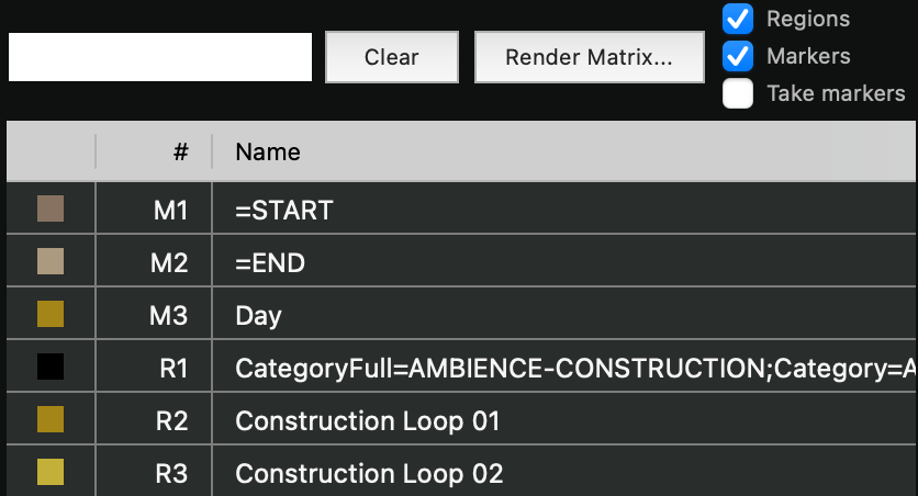 Region/Marker Manager와 타임라인 위에 있는 Region Track에서는 하위 프로젝트 안에 있는 모든 Region을 볼 수 있습니다.