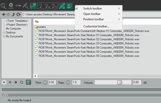 “스크립트 설치하기” 후, 스크립트를 트리거하는 버튼을 Media Explorer 툴바에 추가할 수 있습니다.