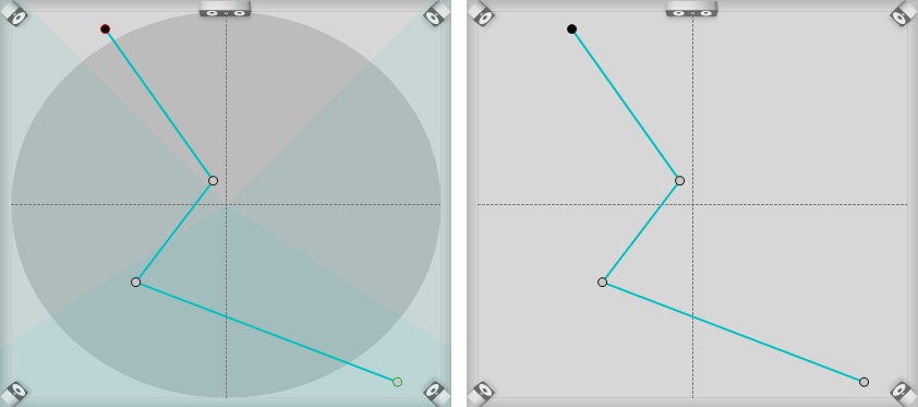 如果使用衰减来模拟信号远离听者时的自然衰减,则可能需要使用最大距离半径和声锥作为参考,以便您在坐标图视图中创建路径时能够查看不同的衰减区域。