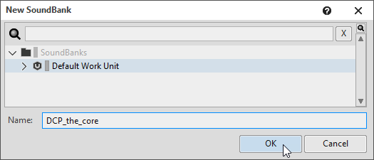 《Cube》已经编好代码要找 "DCP_the_core" SoundBank,所以一定要确保 SoundBank 的命名与之保持一致。