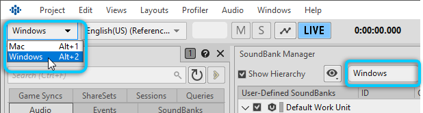 所选平台会影响 SoundBank Manager 中显示的信息,所以其中也会指示选定的平台。