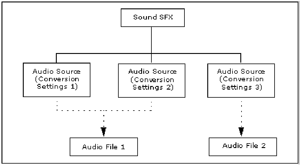 在 Wwise 中,游戏内的各种语音和音效素材用称为声音对象的特殊 Audio Structure 表示。这些声音对象包含链接到原始音频文件的源(source)。