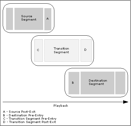用户也可以用 Source 对象、Destination 对象及 Transition Segment 三者的 Pre-entry(前导段)与 Post-exit(后尾段)进行组合,让过渡更加平滑无缝。
