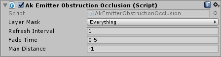 - 在场景中添加有 Ak Room 组件时,Ak Emitter Obstruction Occlusion 组件使用声障。