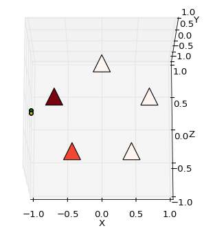 发声体相对朝向:发声体朝向相对于听者逆时针旋转了 90 度,这意味着虚声源分布相应地进行了旋转。在第四张图片中 Spread 为 100,效果最为明显,这些颜色表示输入声道已经进行了旋转。当然,如果声源是单声道情况就会不同。