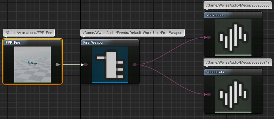 Unreal Integration 需要用户创建代表 Wwise 工程中对应对象的素材。You can create these assets through Using the Drag-and-Drop Feature drag-and-drop from the Wwise Browser, or from the right-click menu in the Content Browser. 通过拖放创建的素材自动包含将其与其代表的 Wwise 对象关联所需的信息(GUID、ShortID、Name)。在通过 Content Browser 创建素材时,必须手动添加这些信息。无论采用哪种方式,随后都可对素材进行编辑来指向新的或不同的 Wwise 对象。如需详细了解使用这些素材类型的 Blueprint 函数,请参阅 Blueprint 函数 章节。