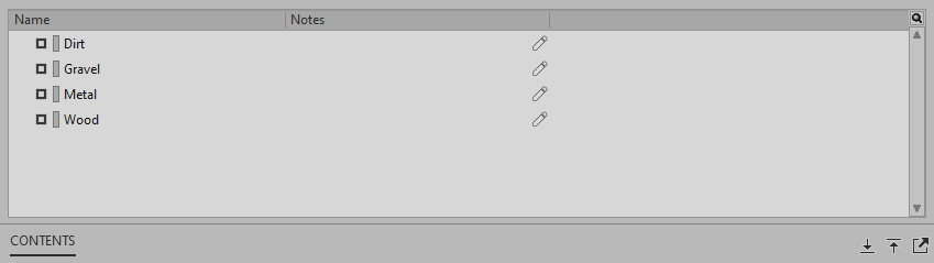 When you load a Switch Group into the Property Editor, the Switches within the Switch Group will be displayed in the Contents Editor. 可以编辑各个 Switch 的名称,并添加备注。