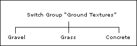 在 Wwise 中,需要先将 Switch(切换开关)置于 Switch Group(切换开关组)中才能使用。通过用 Switch Group 对 Switch 进行编组,您可以高效管理游戏中不同条件下的声音、音乐和振动对象。例如,为了管理角色的各种脚步声,可以创建名为“Ground Textures”的 Switch Group。然后在 Wwise 中为游戏中每种地面材质创建对应的 Switch。根据游戏条件,您可以创建针对碎石地、草地和混凝土的 Switch。