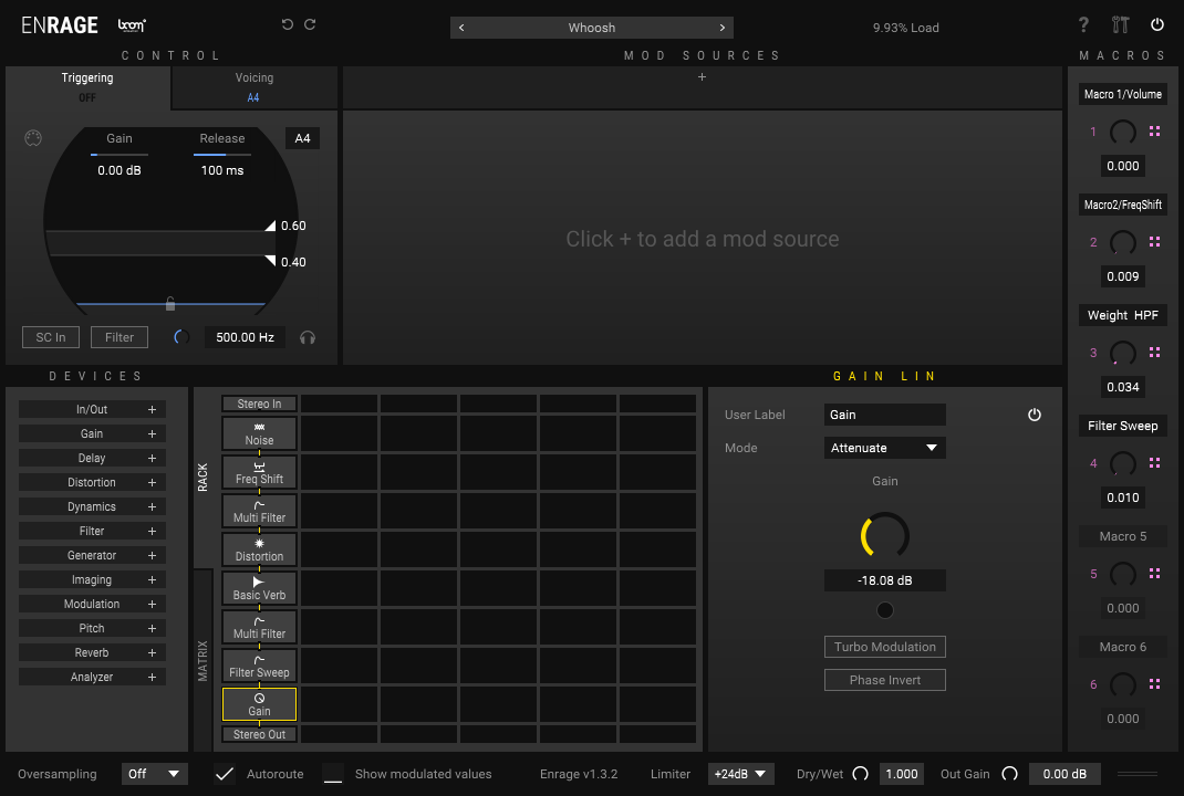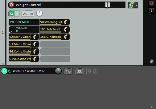 Weight Control 音轨只需使用一个控件就可管理多条音轨上的各项插件参数。您可以利用其来以简单直观的方式实现复杂精细的设计。直接调节 Weight 包络便可实现 Weight 的增减。对小的声音,效果细微;对大的声音,效果显著。