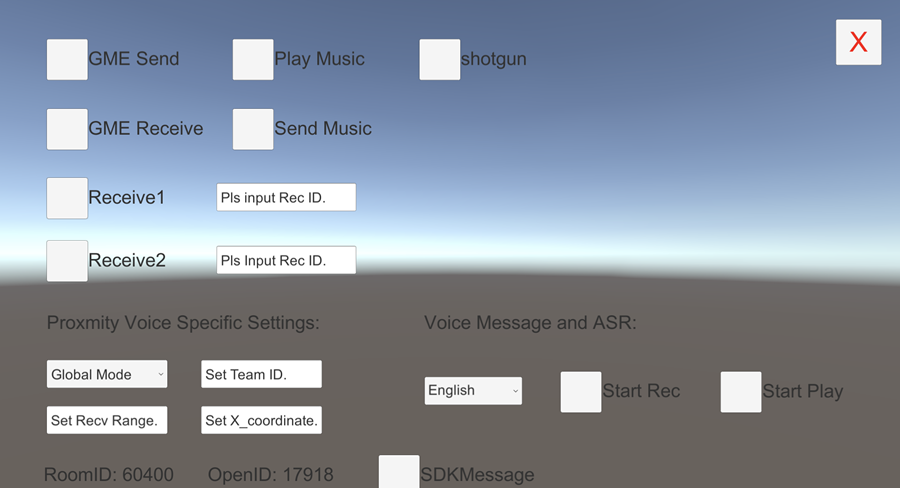 AuthScene.cs 提供用于为会话指定 OpenID(也叫 User ID)和 RoomID 的用户界面。