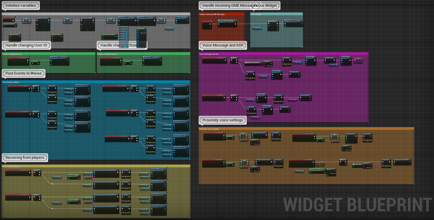 The HomeWidgetBlueprint Graph is a good example of how to initialize and use GME using Blueprints exclusively. All actions are grouped in color comment sections.